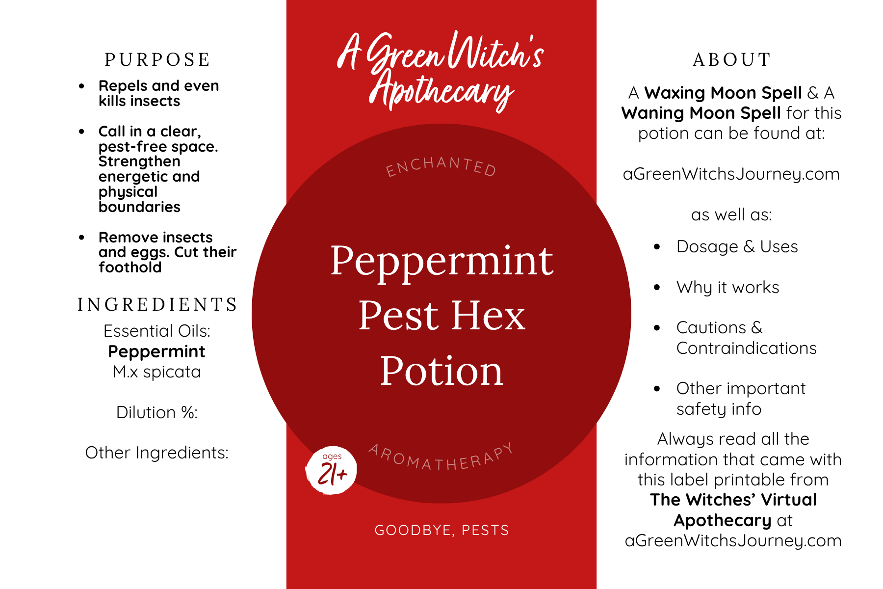 All methods of use as mentioned in the base recipes guide @ A Green Witch’s Journey which can be found here (free to members)